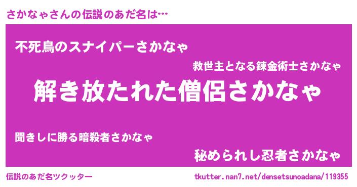 | ヒーロー風カッコイイあだ名 | 『仮面サカダー』『銀牙騎士サカ』 |