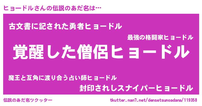 | ヒーロー風カッコイイあだ名 | 『天弓騎士ヒョ』『仮面ヒョダー』 |