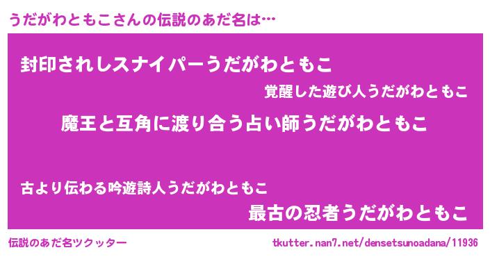 | ヒーロー風カッコイイあだ名 | 『慈愛の使者うだがわともこ』 |