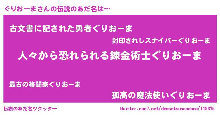 | ヒーロー風カッコイイあだ名 | 『正義の使者ぐりおーま』『仮面グリダー』 |