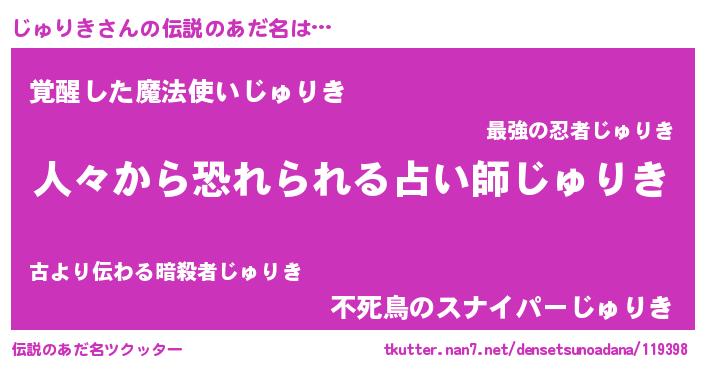 | 欧米人風あだ名 | 『ダニエルじゅりき』『ウサインじゅりき』 |