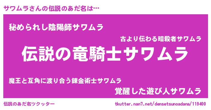 | ファンタジー風あだ名 | 『サワフェル』『エターナルサワムラー』 |