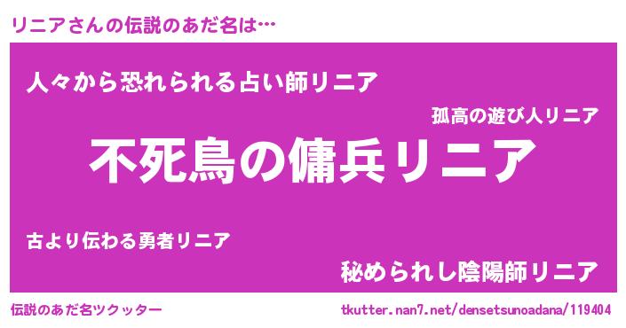 | ファンタジー風あだ名 | 『リニフェル』『クインリット』 |