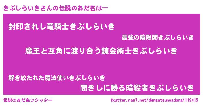 | 意味不明あだ名 | 『住所不定無職きぶしらいき(91歳)』 |