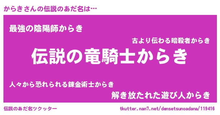 | ヒーロー風カッコイイあだ名 | 『スーパーカラキ』『ウルトラからきマン』 |