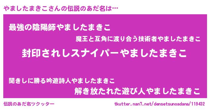 | 男性向けラノベタイトル風あだ名 | 『ヤマシタマキコアートオンライン』 |