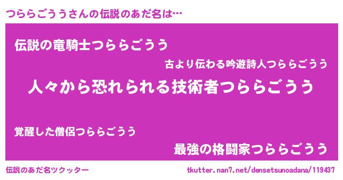 | ヘコむあだ名 | 『つらにー』『つくし』『つらを』 |