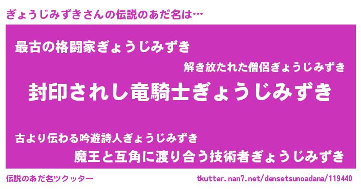 | 胡散臭い通販商品みたいなあだ名 | 『億万長者になれるブレスレット…その名も「ぎょうじみずき」』 |