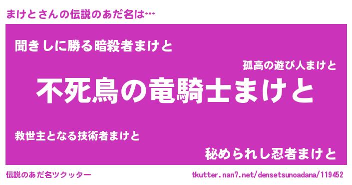 | 胡散臭い通販商品みたいなあだ名 | 『モテモテ間違いなしブレスレット…その名も「まけと」』 |
