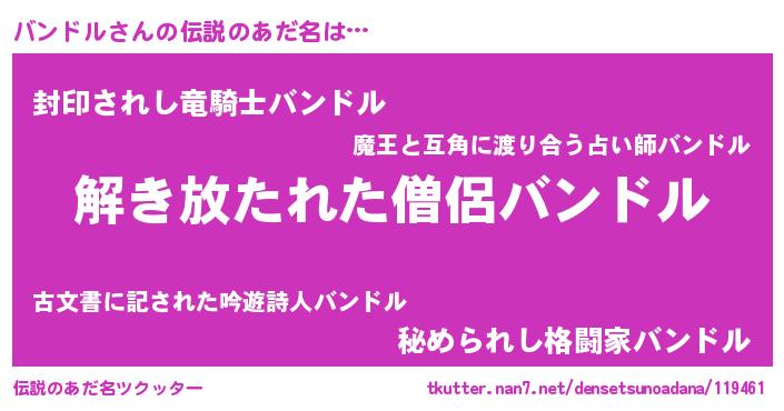 | ヒーロー風カッコイイあだ名 | 『魔戒騎士バン』『サイバー戦士バンドル』 |