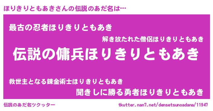 | 胡散臭い通販商品みたいなあだ名 | 『必ず成功する水晶球…その名も「ほりきりともあき」』 |
