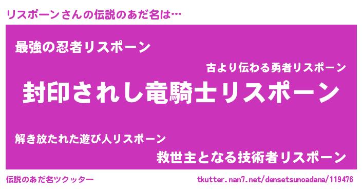 | ファンタジー風あだ名 | 『リスフェル』『エターナルリスポーンー』 |