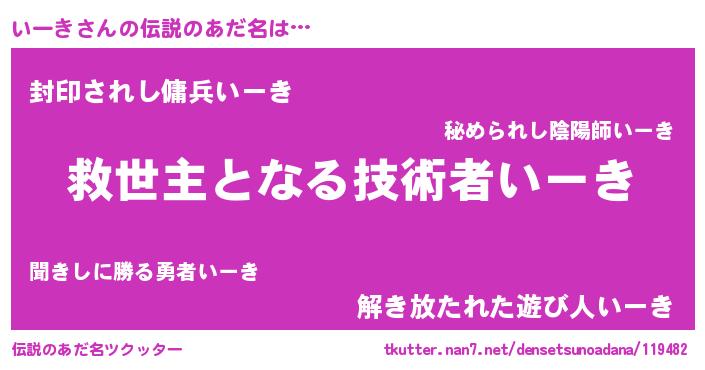 | ヒーロー風カッコイイあだ名 | 『天空の使者いーき』『最強戦士イーキ』 |