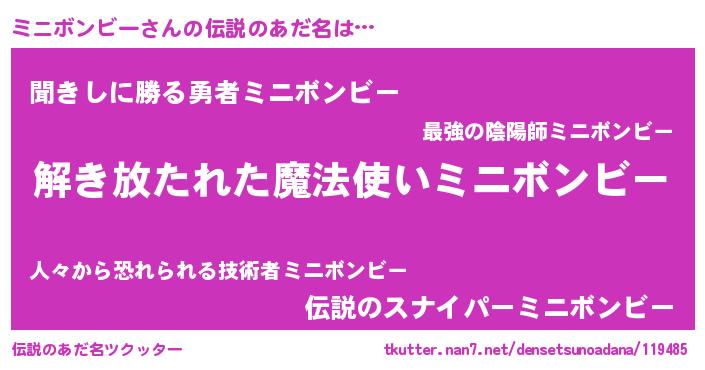 | 女子向けラノベタイトル風あだ名 | 『ミニボンビーアンティーク』 |