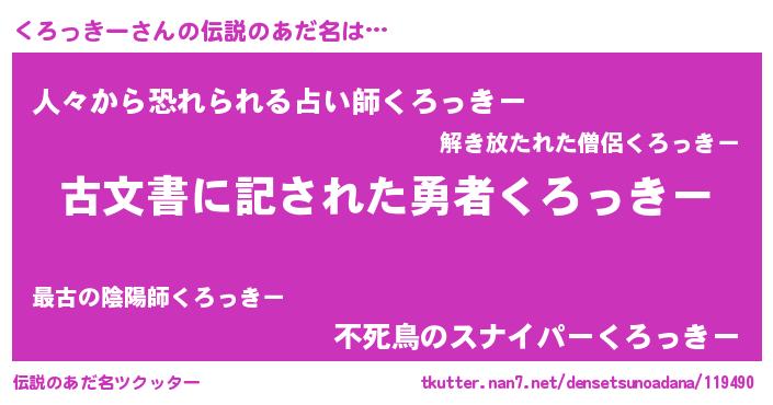 | ヒーロー風カッコイイあだ名 | 『ネオクロッキー』『愛の使者くろっきー』 |