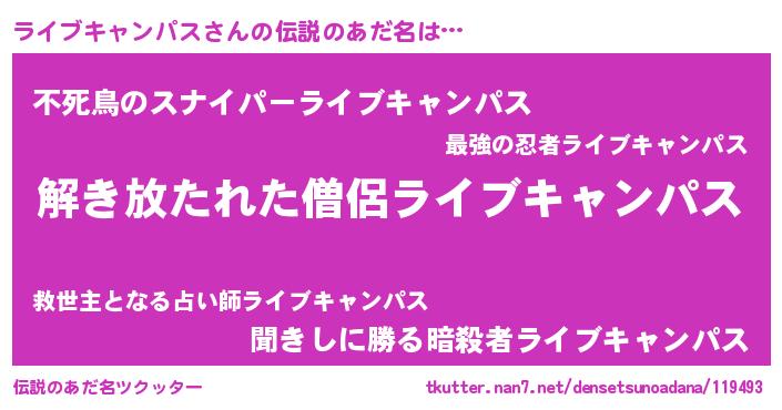 | 意味不明あだ名 | 『とにかく怪しいライブキャンパス』 |