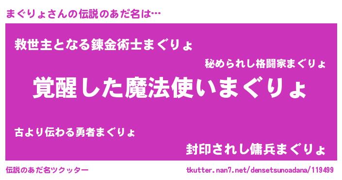 | 女子向けラノベタイトル風あだ名 | 『まぐりょ様がみてる』『まぐりょ恋絵巻』 |