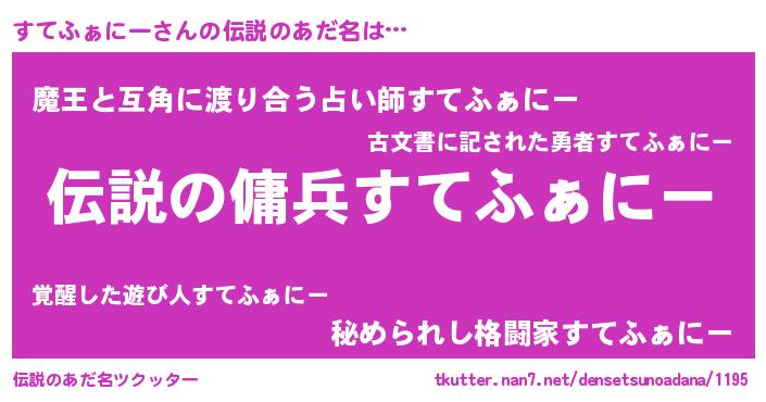 | 意味不明あだ名 | 『住所不定無職すてふぁにー(62歳)』 |