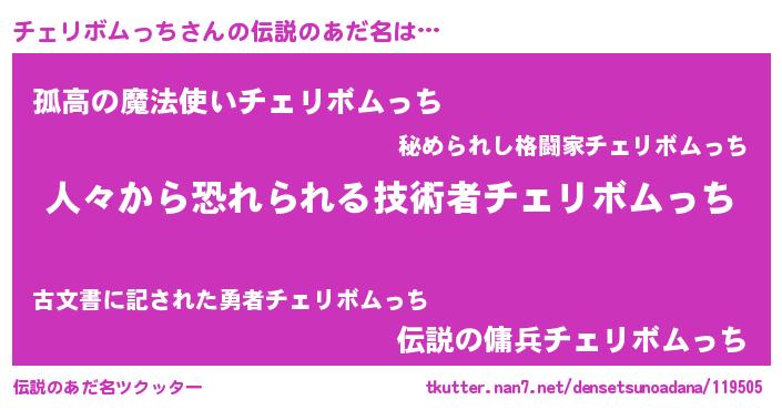 | ヒーロー風カッコイイあだ名 | 『正義の使者チェリボムっち』 |