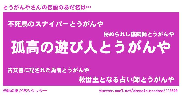| 意味不明あだ名 | 『とにかく怪しいとうがんや』 |