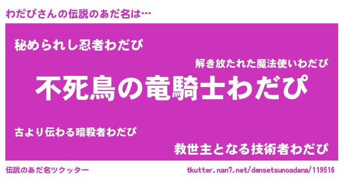 | ヒーロー風カッコイイあだ名 | 『スーパーワダピ』『ウルトラわだぴマン』 |