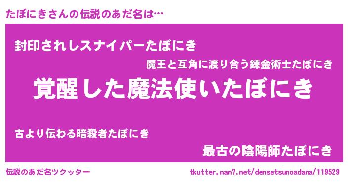 | 意味不明あだ名 | 『住所不定無職たぼにき(1歳)』 |