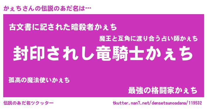 | 胡散臭い通販商品みたいなあだ名 | 『億万長者になれるブレスレット…その名も「かぇち」』 |