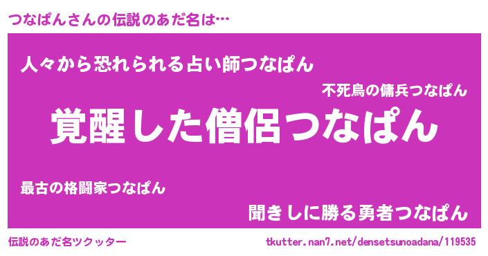 | ヒーロー風カッコイイあだ名 | 『天弓騎士ツナ』『友情の使者つなぱん』 |