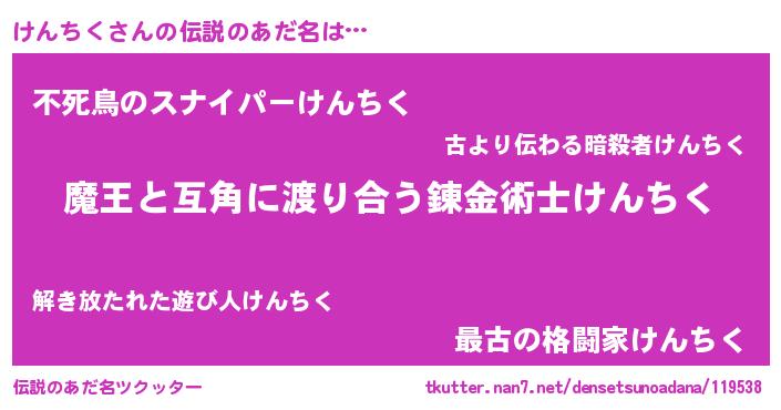 | ヒーロー風カッコイイあだ名 | 『サイバー戦士ケンチク』『ネオケンチク』 |