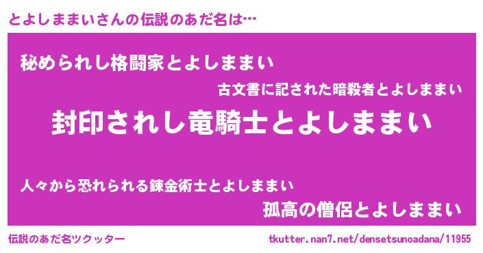 | 男性向けラノベタイトル風あだ名 | 『トヨシママイアートオンライン』 |