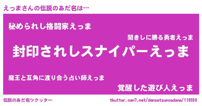 | 意味不明あだ名 | 『つくし科えっま属』『自称えっま』 |