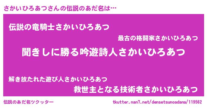 | 意味不明あだ名 | 『永久保存さかいひろあつ』 |