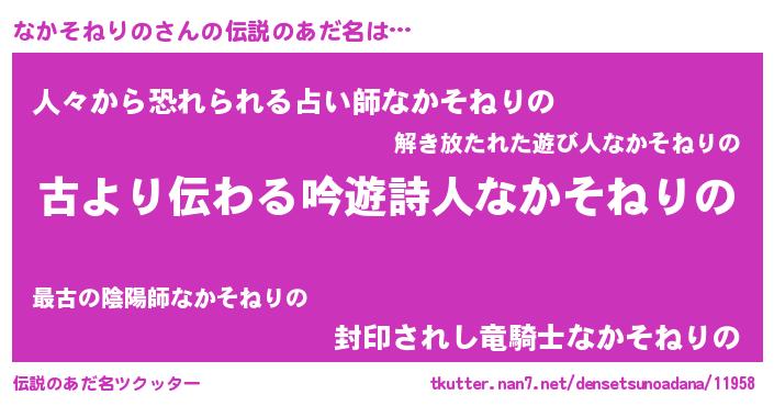 | 意味不明あだ名 | 『住所不定無職なかそねりの(2歳)』 |