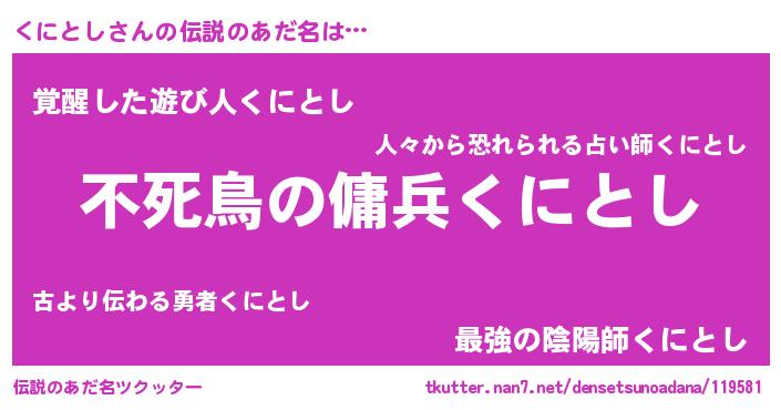 | ヒーロー風カッコイイあだ名 | 『スーパークニトシ』『天弓騎士クニ』 |
