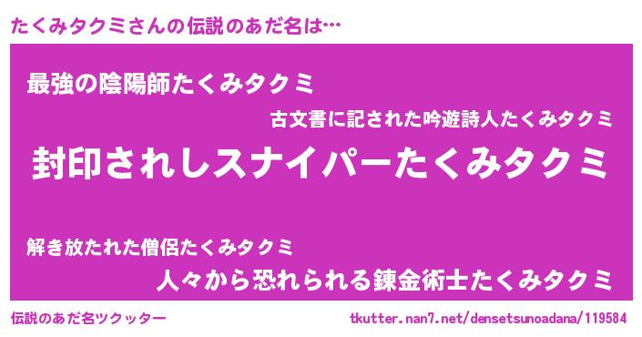 | ヒーロー風カッコイイあだ名 | 『スーパータクミタクミ』『仮面タクダー』 |