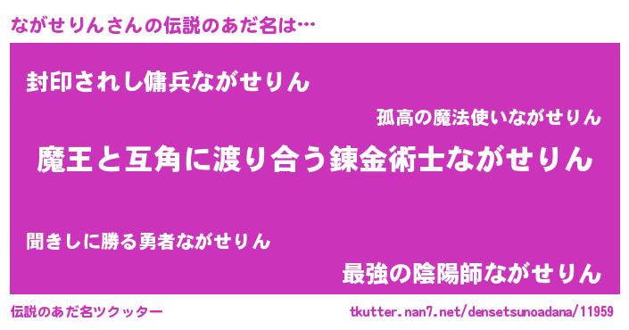 | ヒーロー風カッコイイあだ名 | 『友情の使者ながせりん』『暗黒騎士ナガ』 |