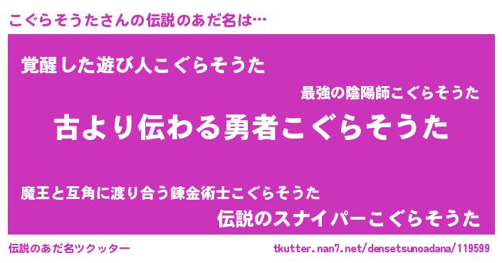 | 意味不明あだ名 | 『住所不定無職こぐらそうた(91歳)』 |