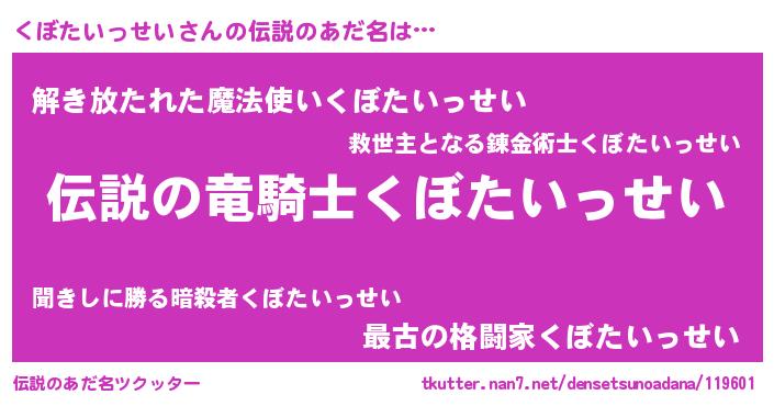 | ヒーロー風カッコイイあだ名 | 『スーパークボタイッセイ』 |