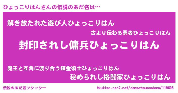 | ヒーロー風カッコイイあだ名 | 『スーパーヒョッコリハン』 |