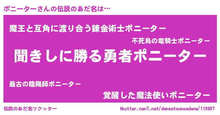 | 女子向けラノベタイトル風あだ名 | 『ポニーターなんてお断りですっ。』 |