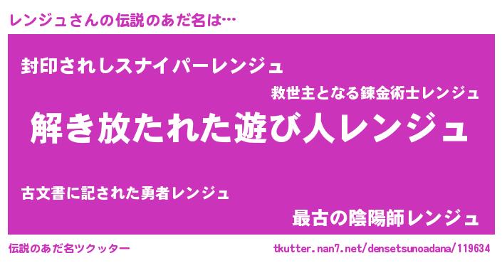 | 意味不明あだ名 | 『とにかく怪しいレンジュ』 |