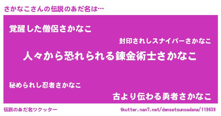 | 意味不明あだ名 | 『自称さかなこ』『永久保存さかなこ』 |