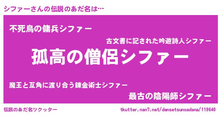 | 女子向けラノベタイトル風あだ名 | 『シファーは平凡を望む』 |