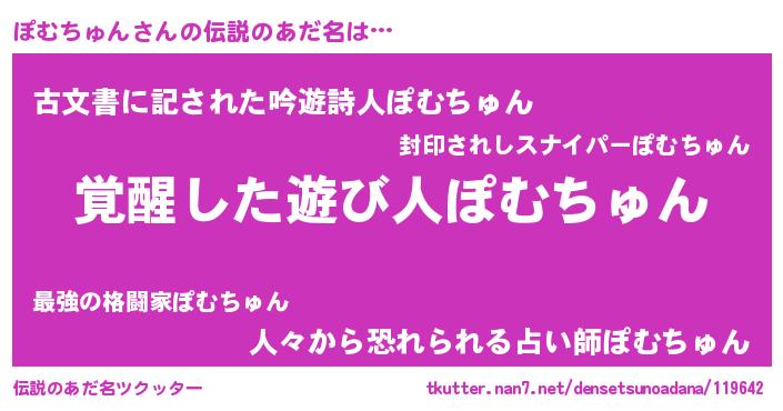 | 意味不明あだ名 | 『とにかく怪しいぽむちゅん』 |