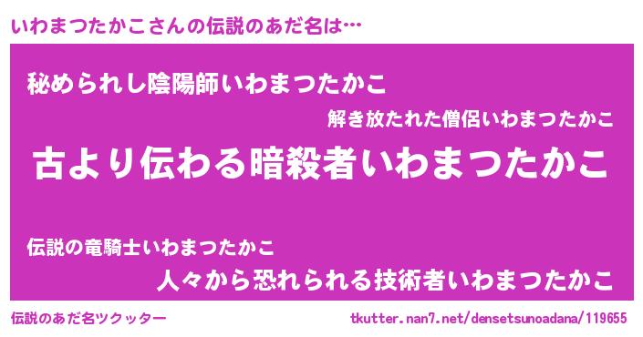 | 意味不明あだ名 | 『永久保存いわまつたかこ』 |