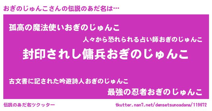 | 意味不明あだ名 | 『住所不定無職おぎのじゅんこ(59歳)』 |