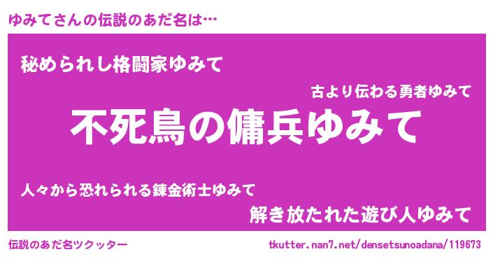 | ポケモン風あだ名 | 『ユミゴンZ』『ユミキング』 |