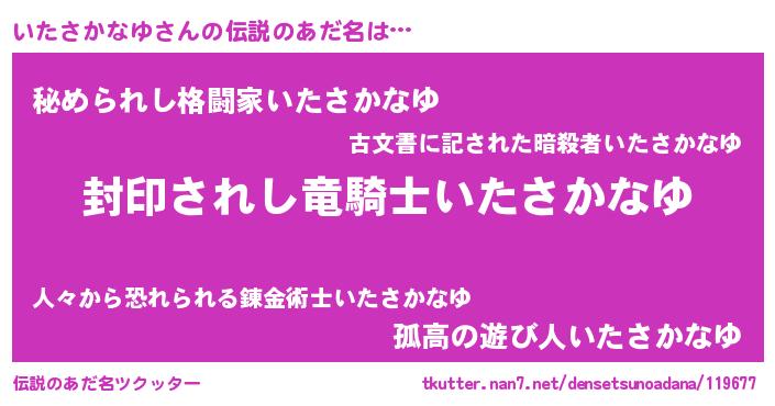 | 男性向けラノベタイトル風あだ名 | 『いたさかなゆに滅ぼされるだけの簡単なお仕事です』 |