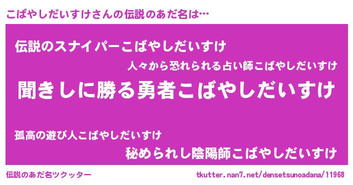 | 肩書あだ名 | 『こばやしだいすけ少将』 |