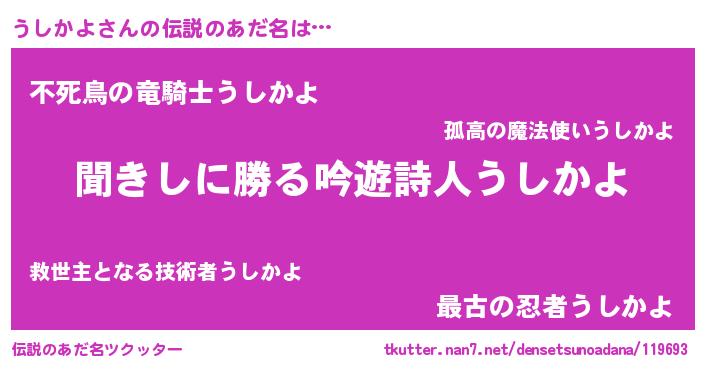 | 男性向けラノベタイトル風あだ名 | 『うしかよという概念が存在しない退屈な世界 』 |
